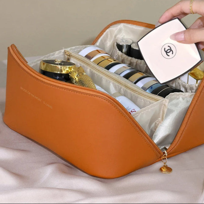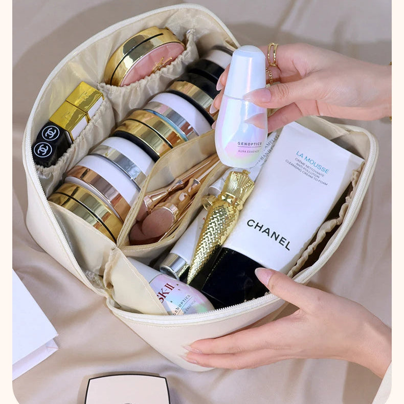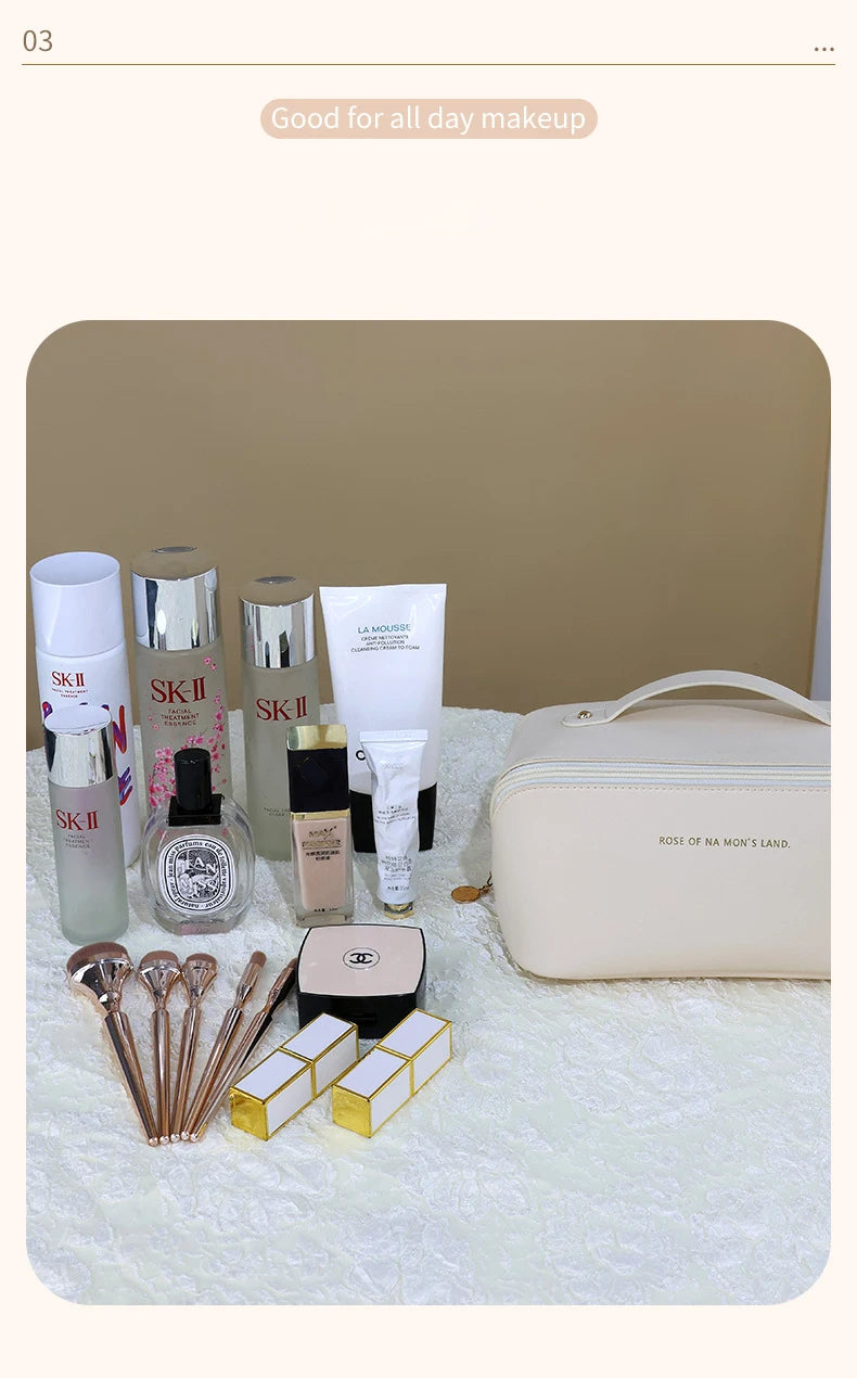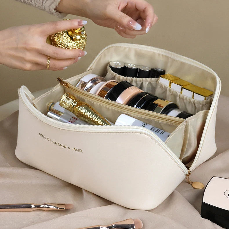 Diese Kosmetiktasche ist mehr als nur Aufbewahrung – sie ist ein Statement für Stil und Organisation. Die sanften Farben und die feine Verarbeitung machen sie zum perfekten Begleiter für deine Beauty-Routine, egal ob zu Hause oder unterwegs. Ideal für Make-up, Schmuck oder alles, was du liebst – sicher verstaut und elegant verpackt.
